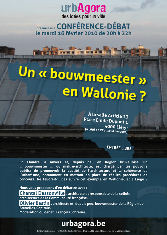 En Flandre, à Anvers et, depuis peu en Région bruxelloise, un « bouwmeester », ou maître-architecte, est chargé par les pouvoirs publics de promouvoir la qualité de l’architecture et la cohérence de l’urbanisme, notamment en mettant en place de réelles procédures de concours. Ne faudrait-il pas suivre cet exemple en Wallonie, et à Liège ?