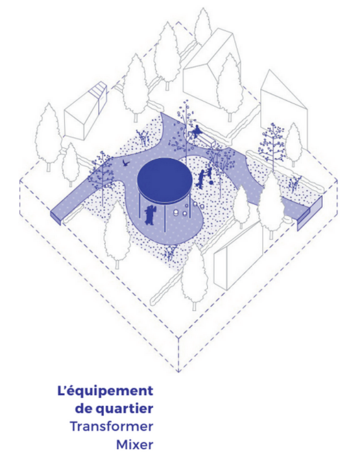 D’un parcellaire entièrement privatisé, dépendant d’une infrastructure pesante et peu efficiente, nous explorons les possibilités de reconfigurer ces quartiers vers plus de mise en commun. Ces pistes sont ouvertes, et nous revendiquons ici que la description est nécessaire et suffisante à la discussion. Ce travail de représentation et l’exposition qui a eu lieu ont pour ambition d’éveiller les imaginaires par le projet. Grâce au dessin, à la cartographie, on donne à voir une forme de systématisation d’espaces, d’initiatives, de projets, qui existent déjà sur le terrain, sous des formes plus éparses, comme autant de laboratoires qui vont dans le sens des transitions souhaitées. Mettre en lumière le déjà-là, raisonner sur sa capacité à devenir structurel, permet de s’en saisir comme d’un levier pour aller plus loin. Forger une crédibilité à cet imaginaire a donc été la première étape de la recherche ; l’objectif était de révéler des opportunités, montrer des possibilités sans chercher à être ni conclusif ni dogmatique.
