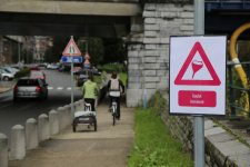 Le 19 août dernier, le groupe de travail mobilité d’urbAgora a placé sur le tracé du Ravel-Meuse, entre Angleur et Coronmeuse, une quarantaine de panneaux signalétiques doucement absurdes.