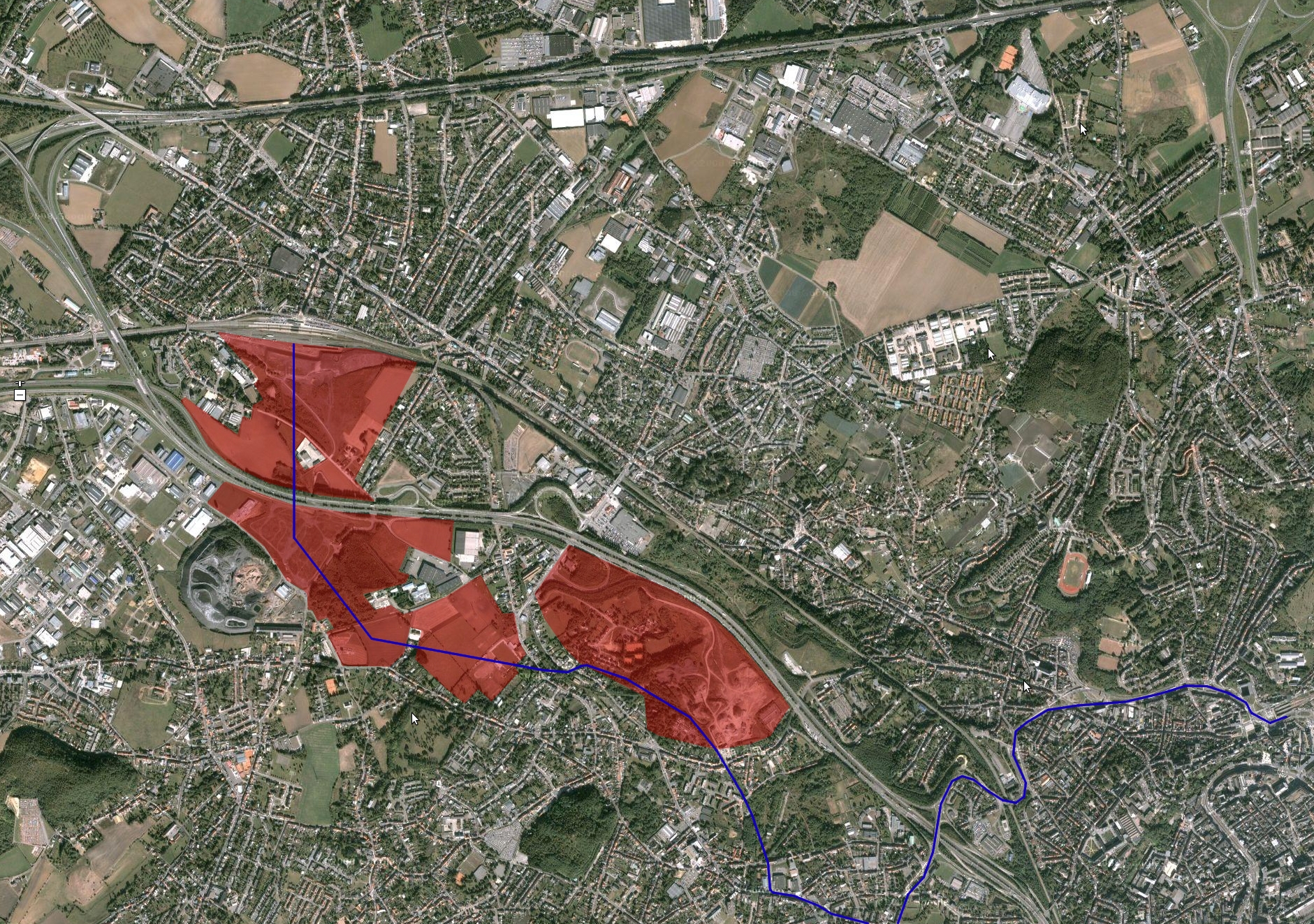 Si on laisse faire la SPI +, ces zones particulièrement intéressantes se verront vraisemblablement occupées des zonings d’activités non-urbains, sur le modèle du zoning de Grâce-Hollogne voisin. C’est-à-dire quelque chose comme ceci.