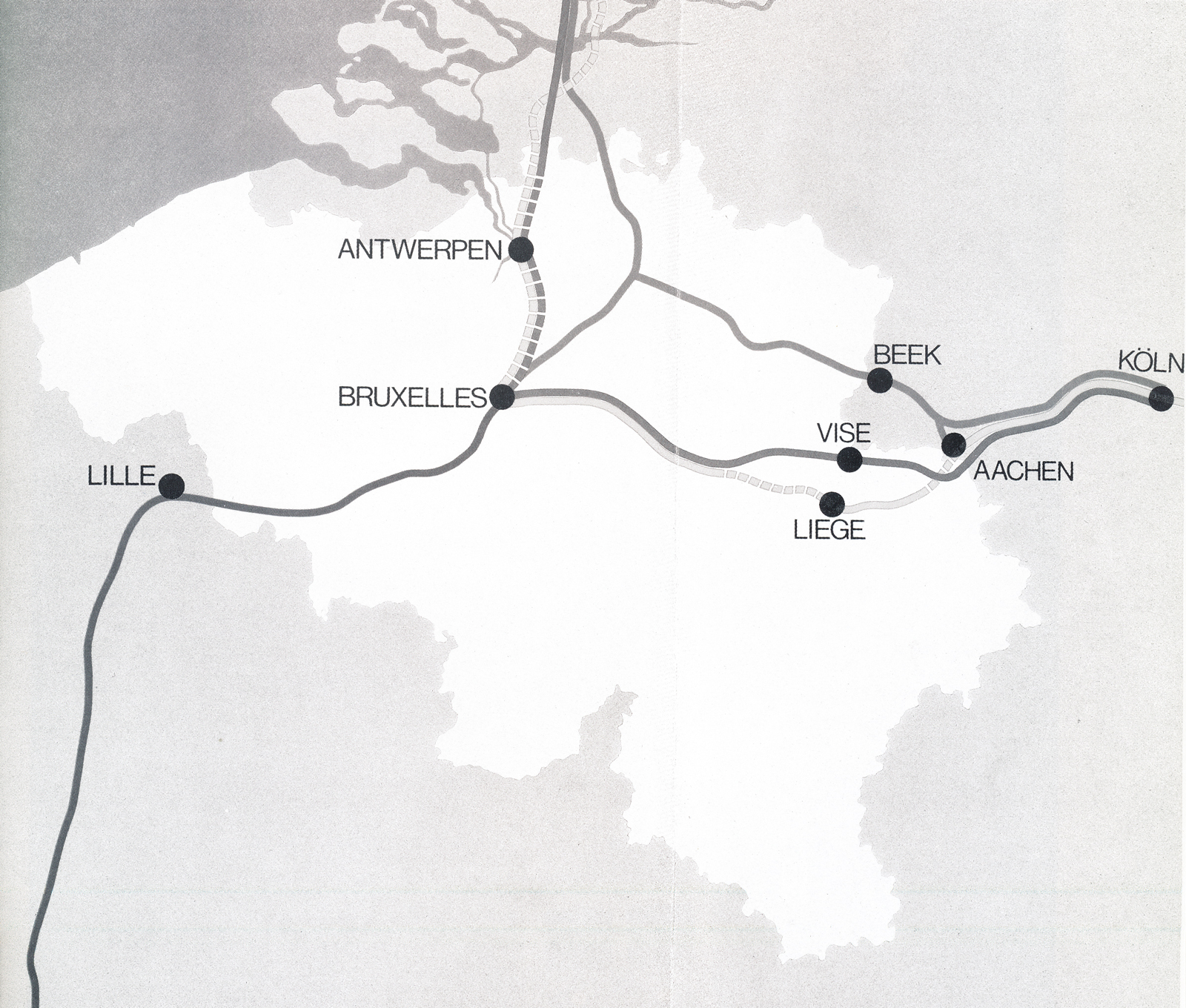 Des trois tracés envisagés fin des années 1980 pour la ligne à grande vitesse destinée à relier Bruxelles à l’Allemagne, un seul passait par Liège. Une mobilisation importante a permis d’obtenir le passage du TGV à Liège. C’était considéré comme un impératif absolu pour le développement de la ville dans le contexte particulier des années 1980 qui, il faut le rappeler, était quasi celui d’une faillite de la Ville de Liège. Le mythe français du TGV a donc été particulièrement bien reçu à Liège et la grande vitesse est toujours perçue aujourd’hui comme un des principaux atouts de la ville qui tente de mettre en place un difficile « redéploiement ». Le secteur de la logistique — qui inclut le TGV avec le projet « Euro-Carex » — est d’ailleurs devenu, notamment au travers de diverses politiques régionales, le fer de lance de ce « redéploiement », même si l’on peut discuter la pertinence de cette option… Bref : en 1993 la décision est prise et est favorable à Liège : on y construira donc une gare TGV à Liège. La société « Euro-Liège TGV » est créée, devenue depuis lors Eurogare.