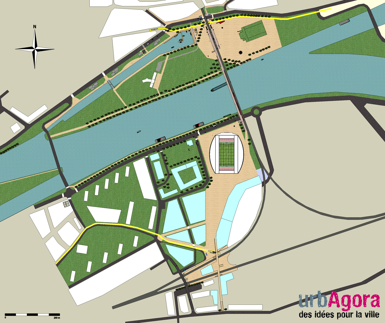Ainsi que nous avons déjà eu l’occasion d’en formuler la proposition, un stade d’une quarantaine de milliers de places est installé en vis-à-vis du parc. Son accessibilité est exceptionnelle : pas moins de deux gares et deux lignes de tram (à terme) ainsi qu’un important parking directement connecté sur l’autoroute. Les nuisances pour les riverains sont nettement moindres que dans l’hypothèse de Coronmeuse.