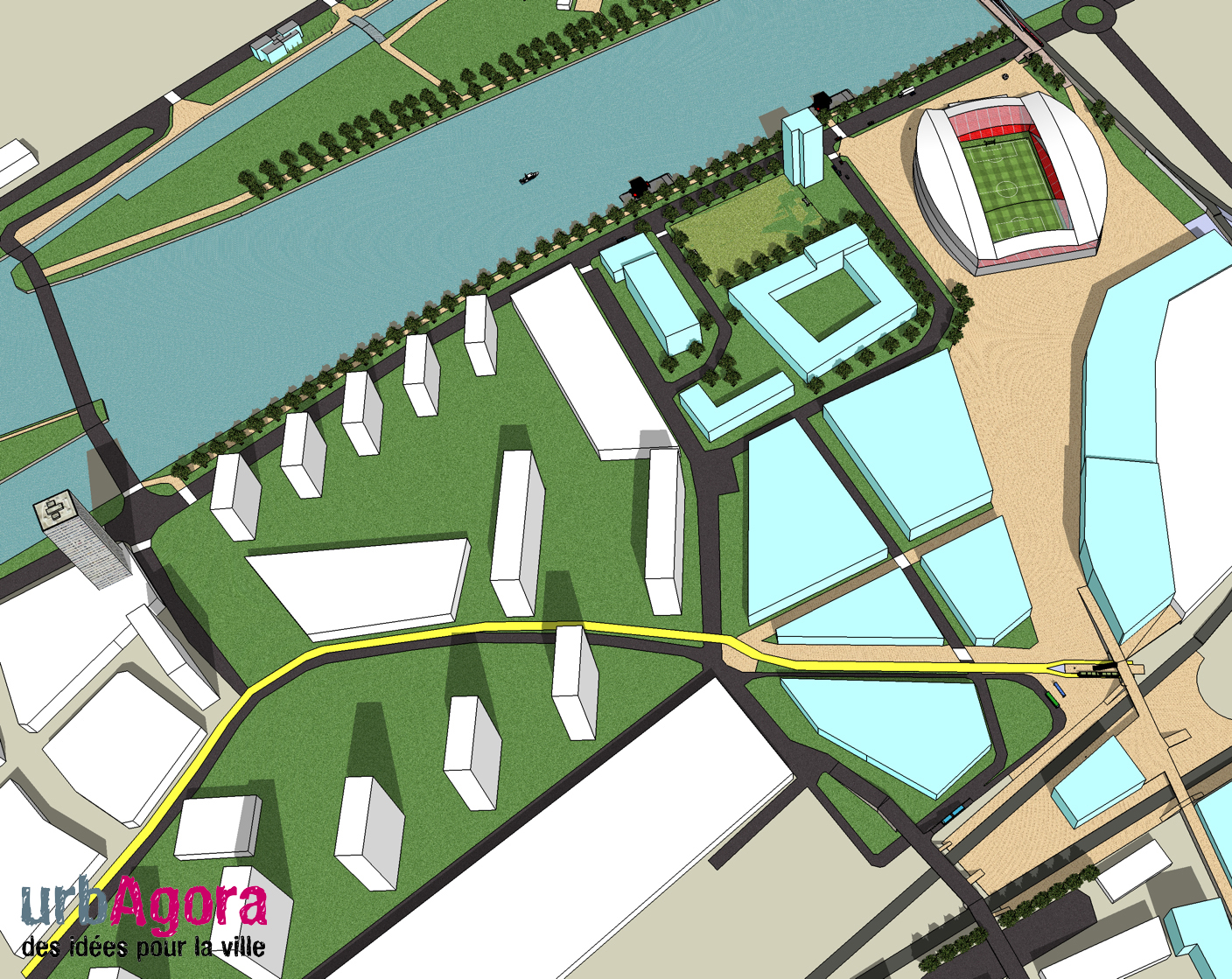 Nous publions à présent une modélisation en trois dimensions de nos propositions, pour permettre à chacun de mieux se les représenter, pour démontrer aussi ce qui nous semble une évidence : le potentiel de ce morceau de ville est fabuleux et mérite mieux que ce qui est aujourd’hui envisagé.