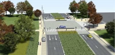 Schéma d’aménagement d’un carrefour (source : présentation publique du SPW du 6 novembre 2010).