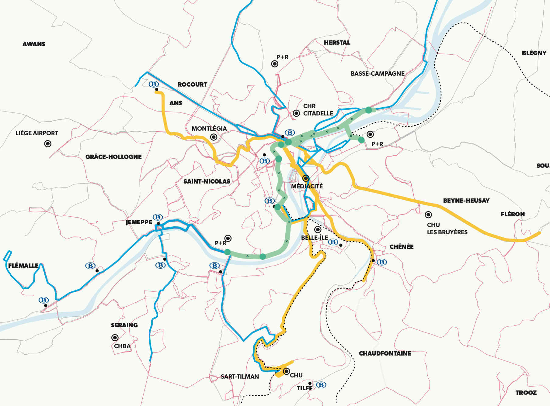 — une ligne reliant la gare d’Ans au Sart Tilman via Jemeppe, le cœur de Seraing et Ougrée ;