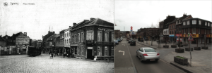 La place Kuborn apparaît comme une limite. Lieu paradoxal où se conjuguent la centralité et le transit. Improbable voisinage d’un patrimoine historique remarquable et d’une pompe à essence. Paysage connu du tous mais si peu habité. C’est cela : un lieu qui se voudrait place publique mais qui est en réalité dévolu au trafic. Des habitants pour l’animer mais qui n’ont pour la plupart ni les moyens, ni les raisons de le pratiquer. Parcourons quelques rues, franchissons le fleuve, il n’en va plus de même. Mais là, dans le « fond de Seraing », il semble bien difficile d’arrimer. Il n’en a pourtant pas toujours été ainsi. Si l’on en juge par les cartes postales, le Seraing d’antan proposait un visage dont certains traits restent familiers mais dont l’expression semble aujourd’hui bien lointaine.