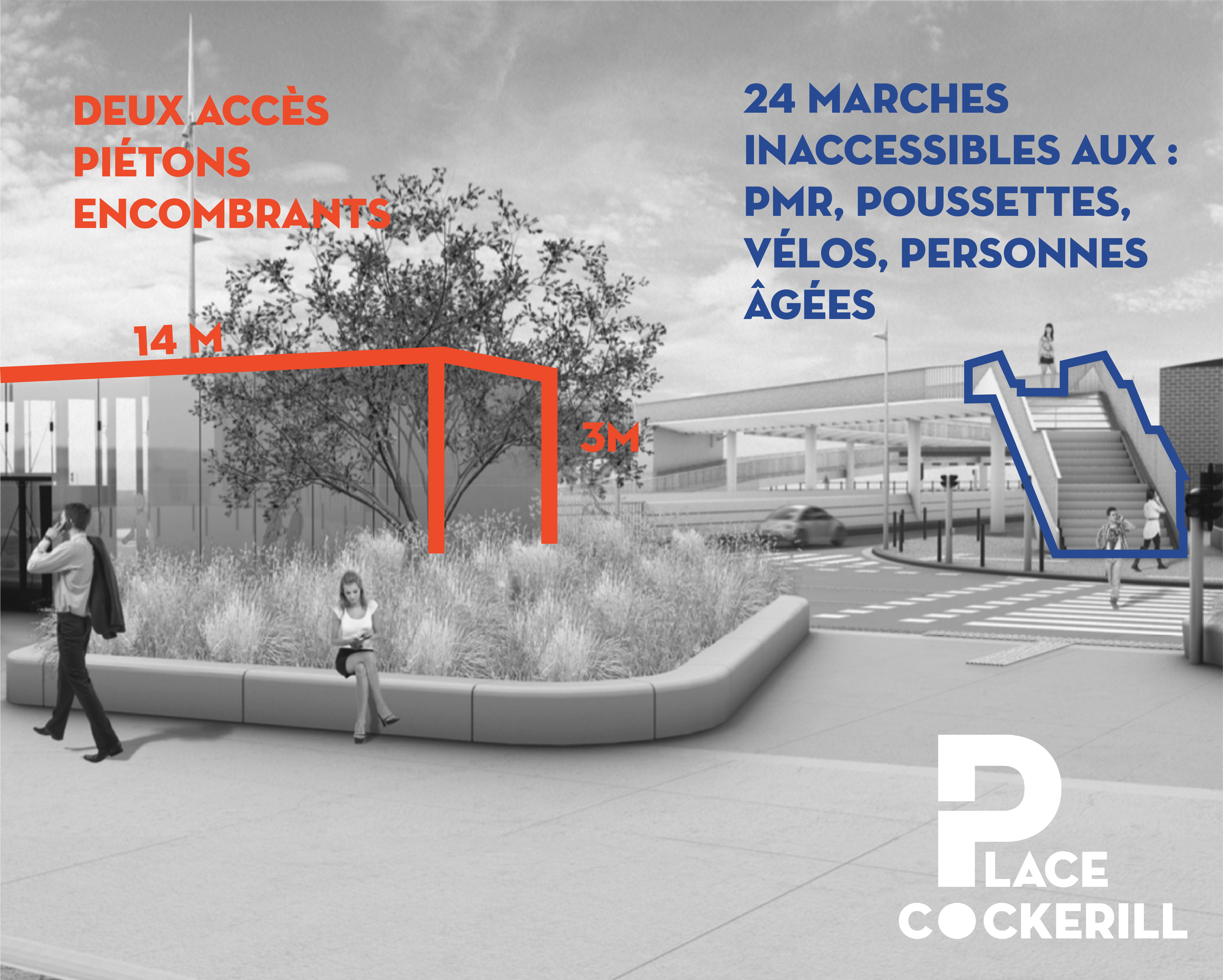 3. Enfin, nous relevons la singulière médiocrité des aménagements proposés pour la place Cockerill. Nous pointons en particulier :